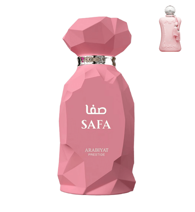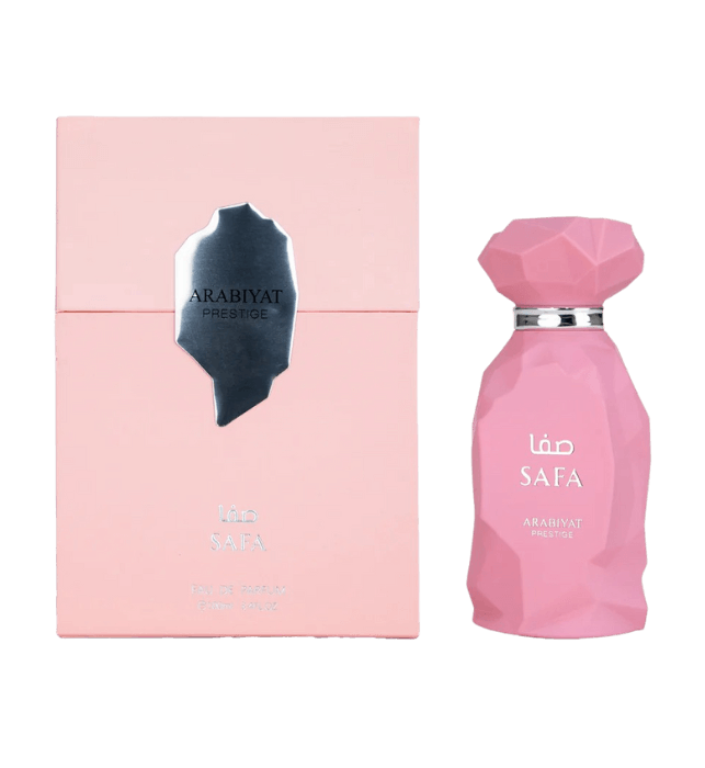 Arabiyat Prestige Safa is a unisex eau de parfum launched in 2025, renowned for its vibrant and refined composition. The fragrance opens with juicy red fruits, lychee, and a subtle nutty hint of hazelnut, leading into a rich floral heart of Turkish rose, magnolia, and cypriol. It settles on a warm and seductive base of ambergris, vanilla, and edible gourmand accords, offering impressive longevity and powerful sillage.