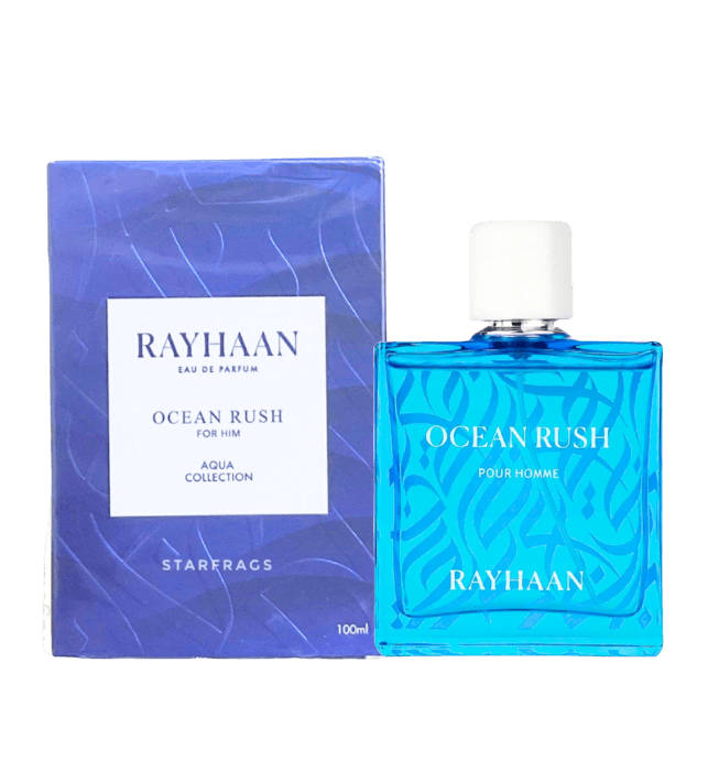 A fresh, energetic, and ocean-inspired fragrance, Rayhaan Ocean Rush Eau De Parfum is a vibrant aromatic-aquatic scent that captures the power and freshness of the sea. Launched in 2022, this modern masculine creation blends sparkling citrus, cool marine accords, and sensual amber woods to create a clean, confident, and refreshing signature. Inspired by the style of Dolce & Gabbana Light Blue Intense, it’s perfect for men who love fresh, sporty, and versatile fragrances.